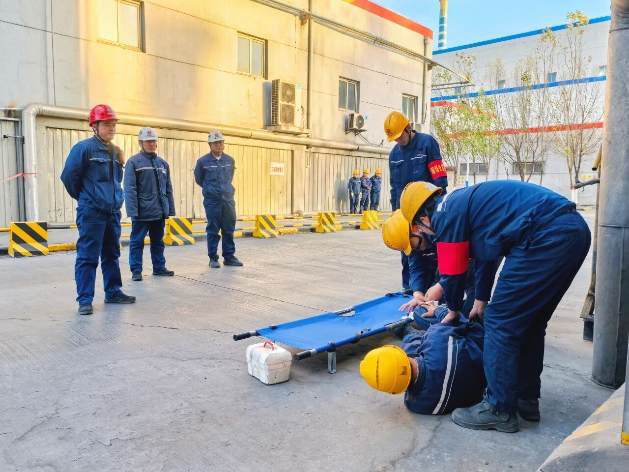 電石車(chē)間組織開(kāi)展高處墜落現(xiàn)場(chǎng)處置應(yīng)急演練